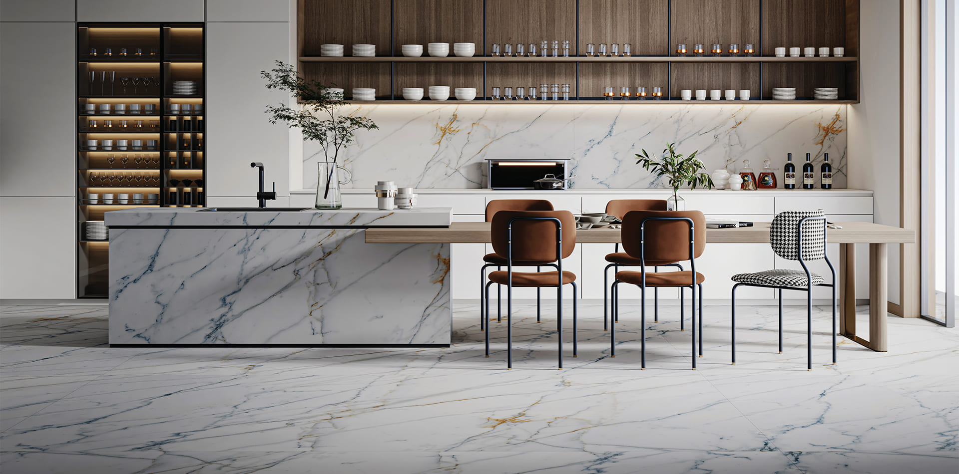 Porcelain Slab Calacatta Gold Series From Best Porcelain Tile Manufacturer KITO Kitchen backsplash idea, how to choose wall panel The KITO original stone beauty rock series selects classic, elegant and accurately m