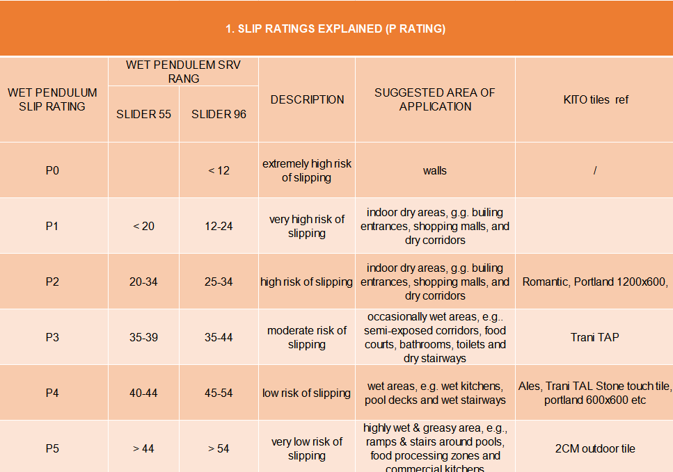 Building on the commitment to safety and innovation, KITO Ceramics introduces its latest line of anti-skid tiles, offering unparalleled functionality and reliability in slip prevention. With a certified anti-skid rating ranging from P3 to P4, these tiles provide an exceptional level of traction, ensuring secure footing even in challenging environments.