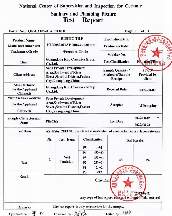 As part of KITO Ceramics' ongoing commitment to quality and innovation, these anti-skid tiles undergo rigorous testing and certification processes to ensure they meet the highest standards of safety, durability, and performance. Customers can trust in KITO Ceramics to provide reliable and superior-quality tiles that enhance the safety and functionality of any space.