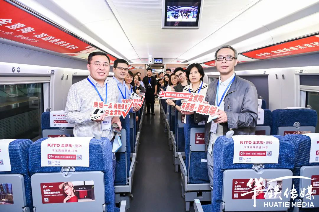 At 11:50 a.m., the departure ceremony of KITO named high-speed train was held at Guangzhou South Railway Station. Ms. Yu Ping, the Vice General Sale Manager of The Fifth Business Division in Guangzhou Center of China Railway Media Group Co., Ltd.and Mr. Hou Bo, the Vice General Manager and General Manager of Ceramic Tiles Division of KITO group with other leaders attended the departure ceremony and cut the ribbon for KITO named high-speed railway.