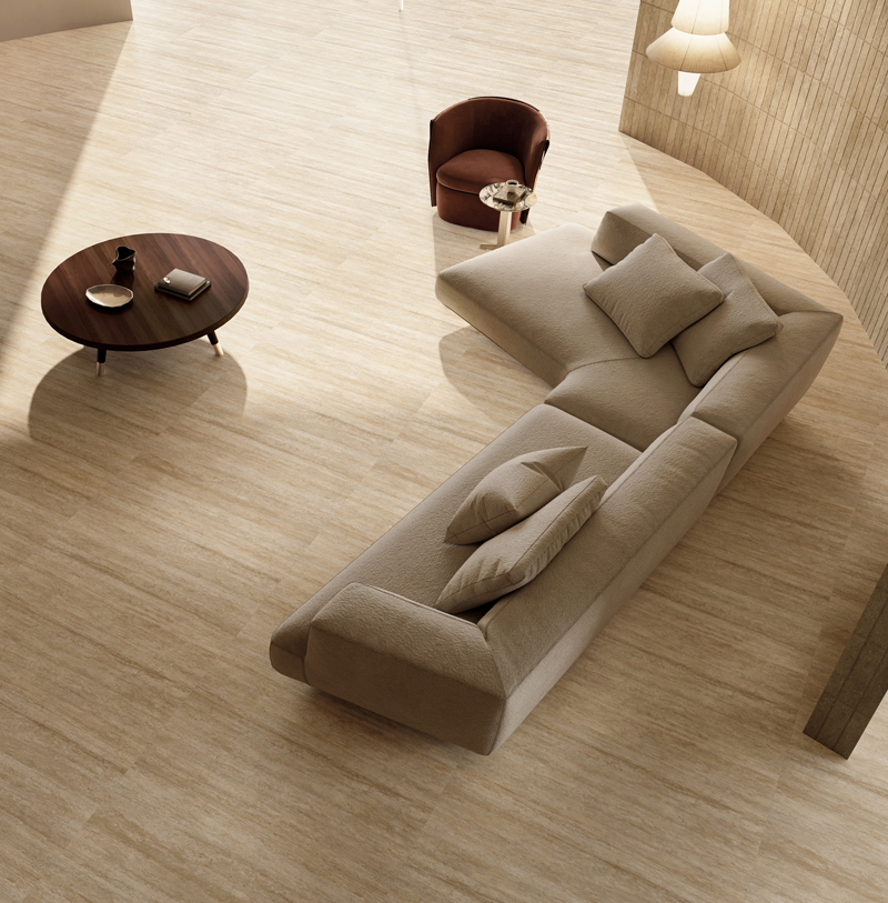 As an evolution of KITO’s classic Amanda series, Amanda II features refined linear travertine veins and a smoother, pore-free surface.