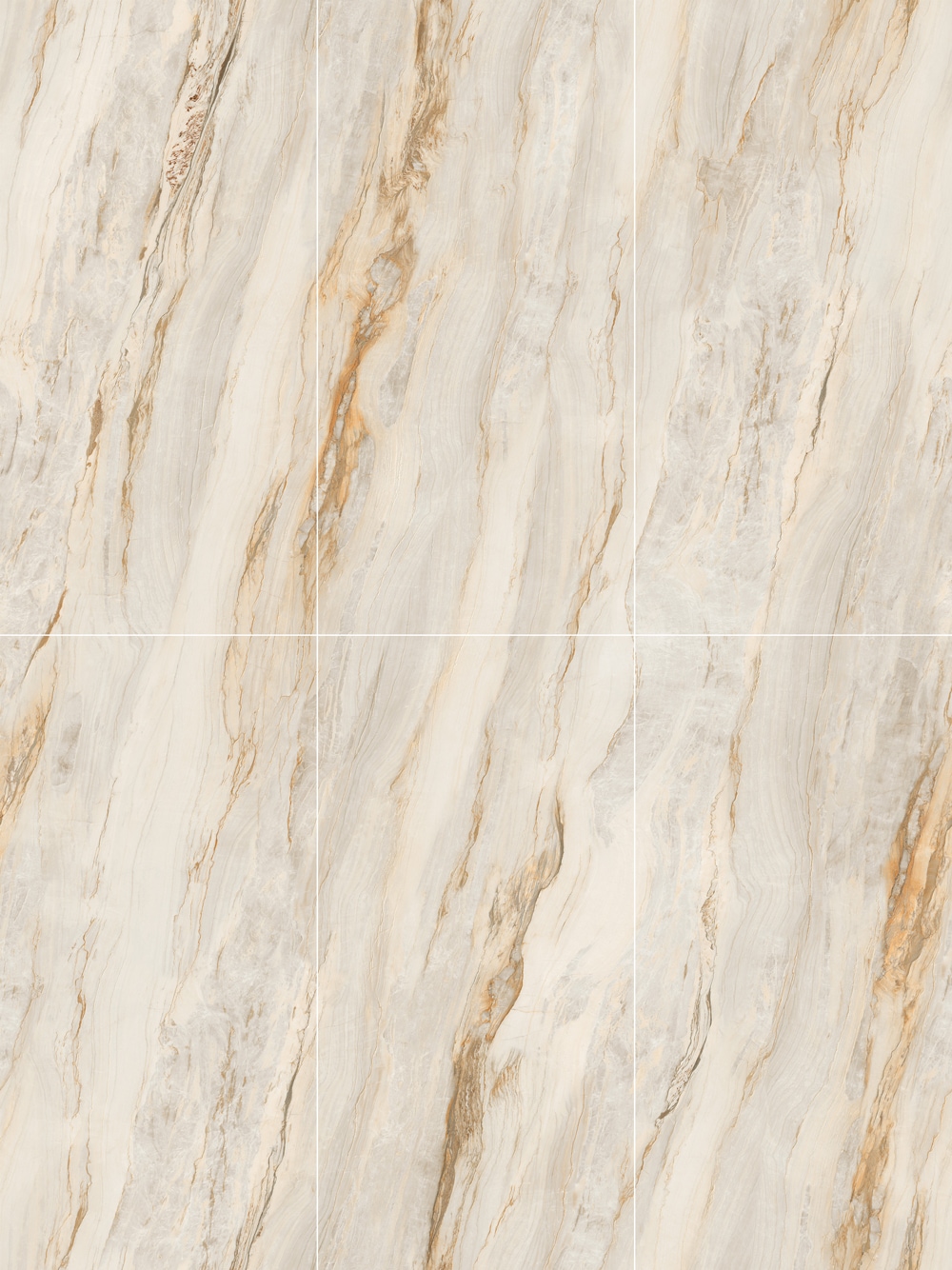 The marble effect porcelain tiles showcases a network of intricate, natural stone veins that are endlessly varied and visually pleasing. The surface is smooth and silky to the touch, with subtle variations in texture. Its luxurious and grand patterns make it ideal for open spaces, creating a modern, understatedly elegant atmosphere.
