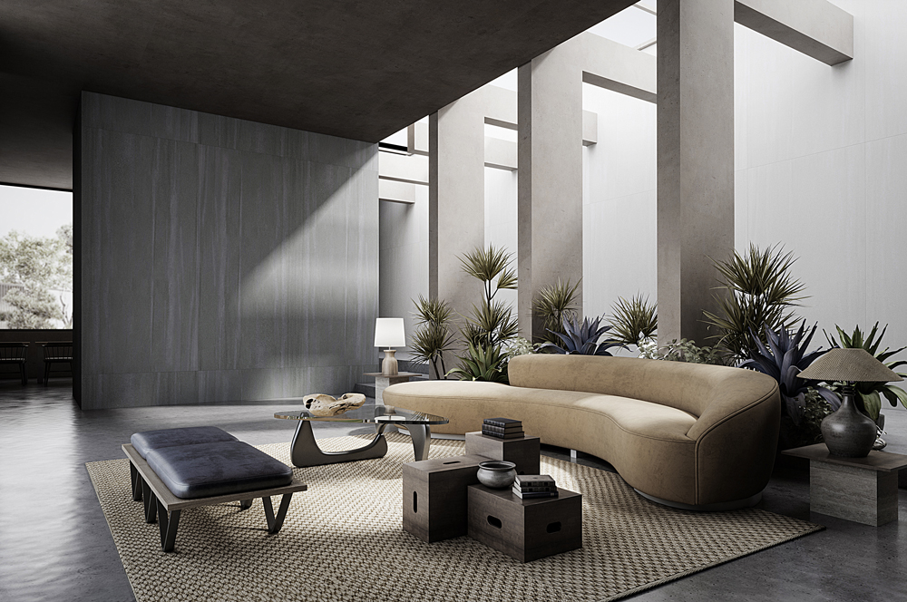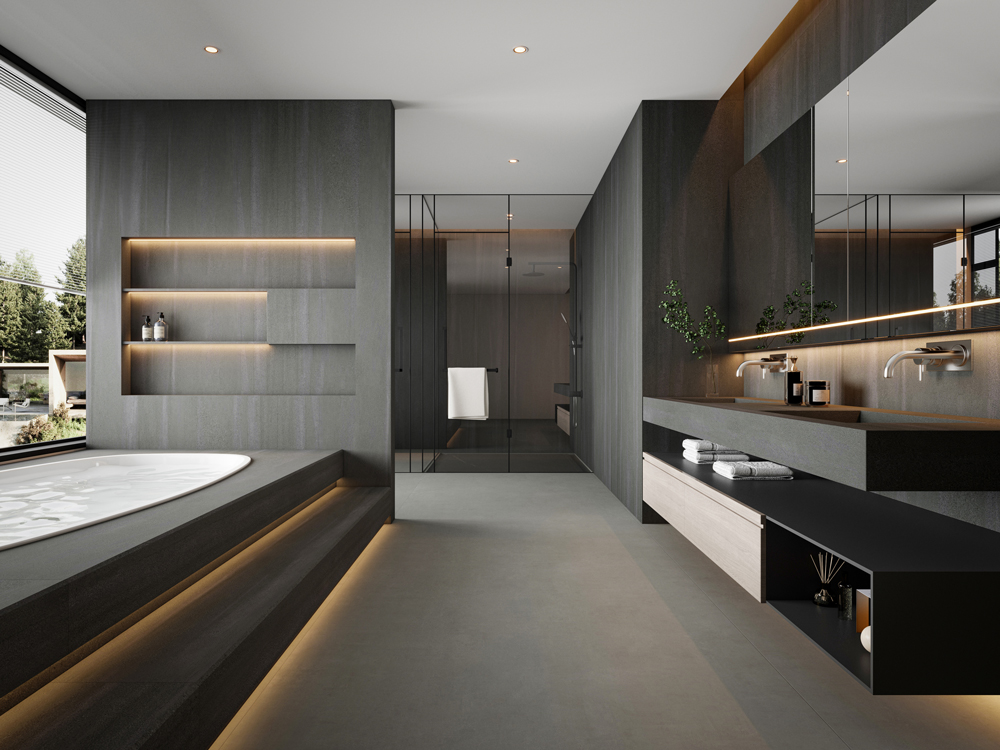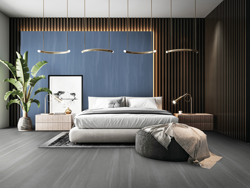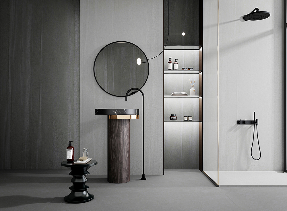 Grey: Set against a pure grey background, this slab features intricate, embossed dark patterns. The delicate texture seamlessly blends modern and classic elements, as well as art and technology.