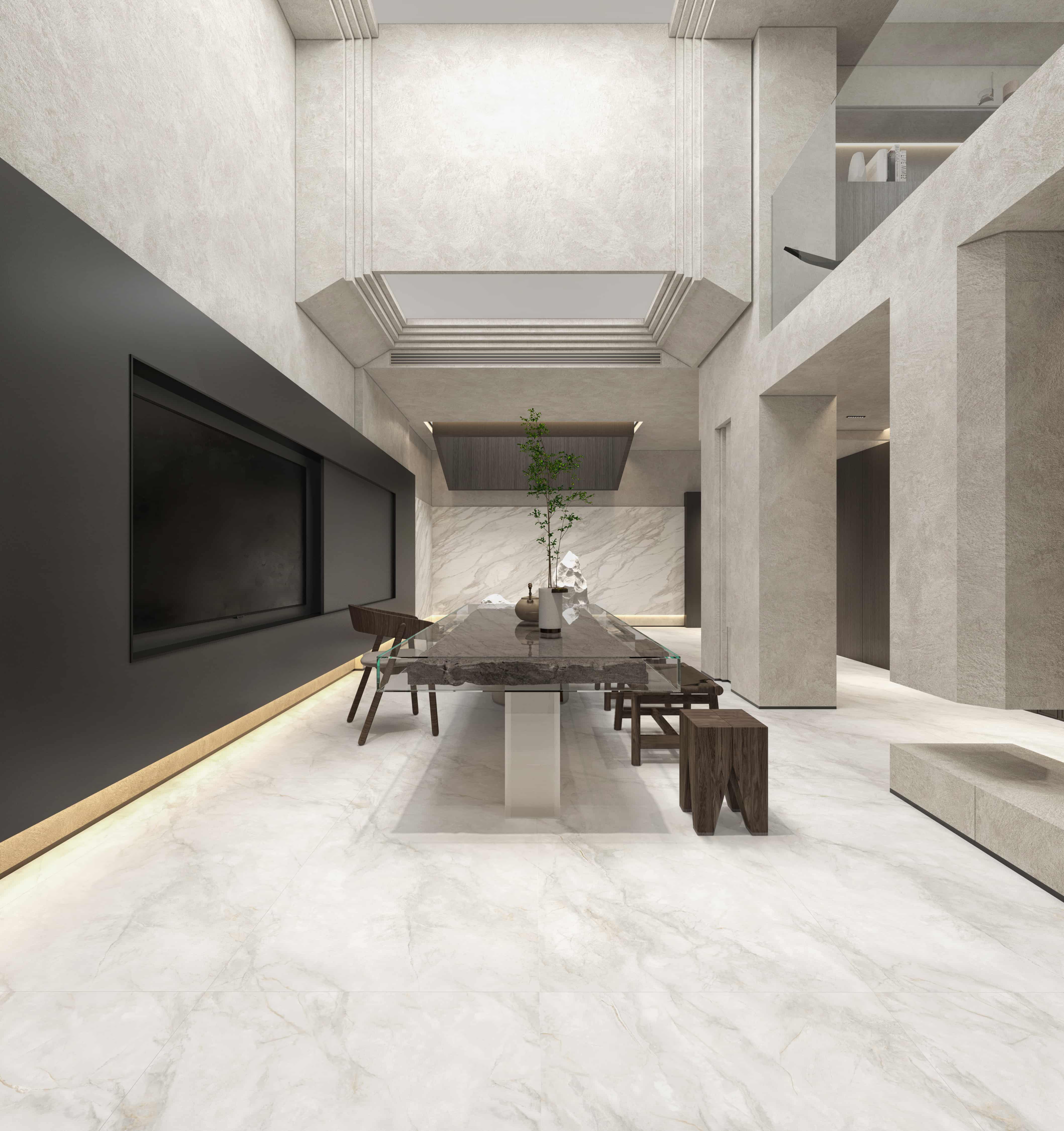 Designed for those who seek tranquility, refinement, and a touch of minimalist luxury, the Fishing in Snow collection brings poetic calmness and positive symbolism into your living space. The 1350mm golden-size tile offers outstanding flexibility for both walls and floors. With an expansive area of 1.08㎡ per tile and an elegant 1:1.68 aspect ratio, it introduces harmony and auspicious meaning to the home.