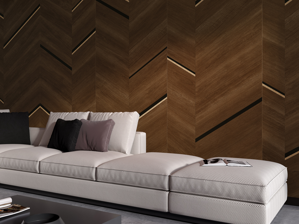 KITO China wood look tile - Grid, where the timeless beauty of wood meets the opulence of gold. These tiles represent the epitome of sophistication and luxury in interior design.