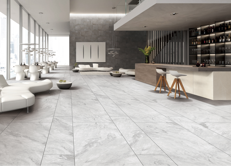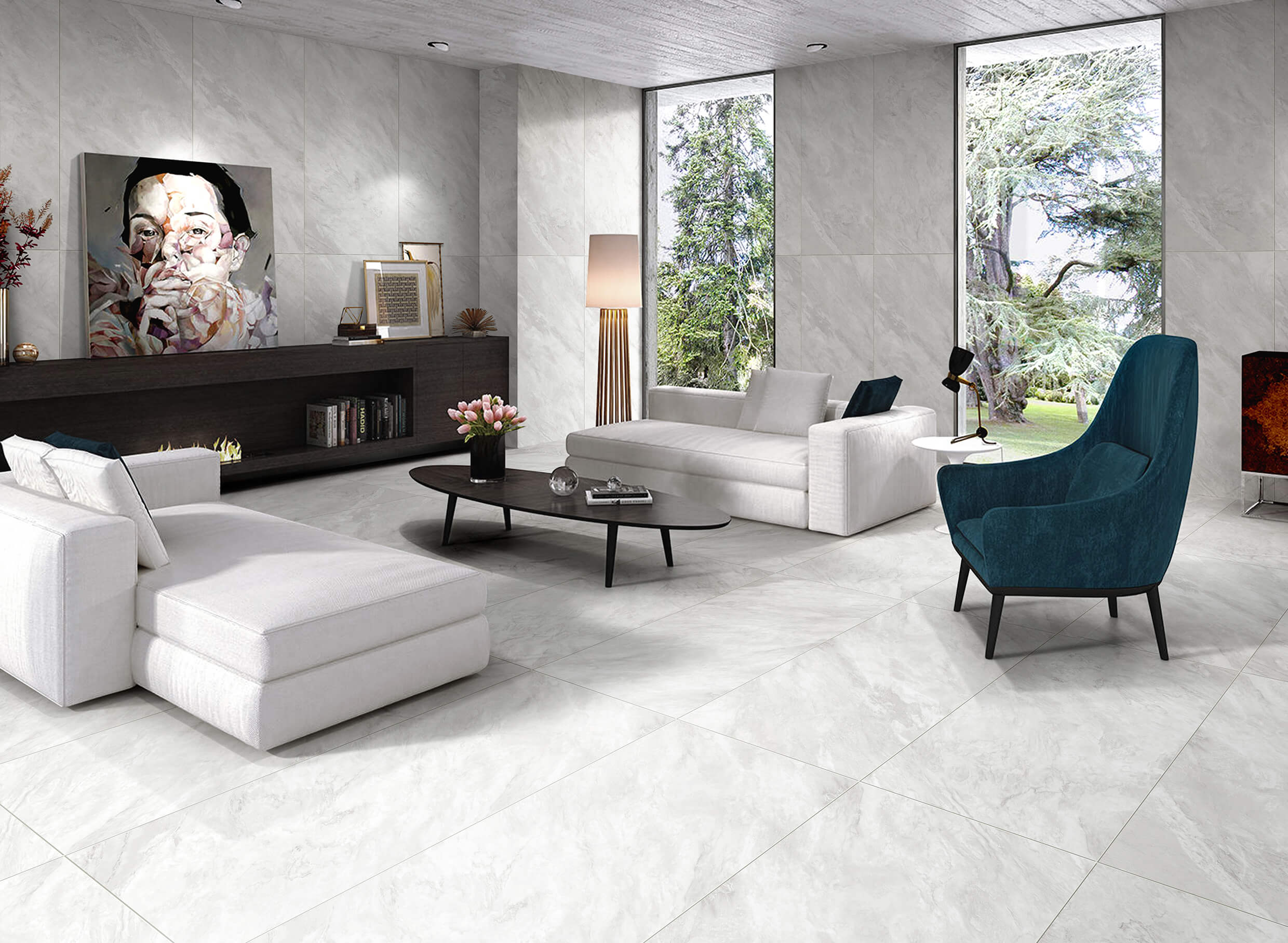 The marble look porcelain tile Interlaken Series is a sophisticated line of porcelain tiles that boasts a combination of glazing, fine-grain coating, and semi-polishing techniques in its production. These advanced processes collectively contribute to the tile's glossy surface finish, imparting a luxurious and elegant appearance.