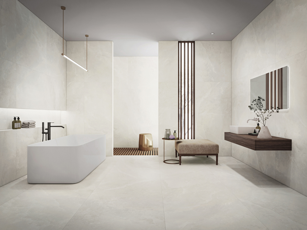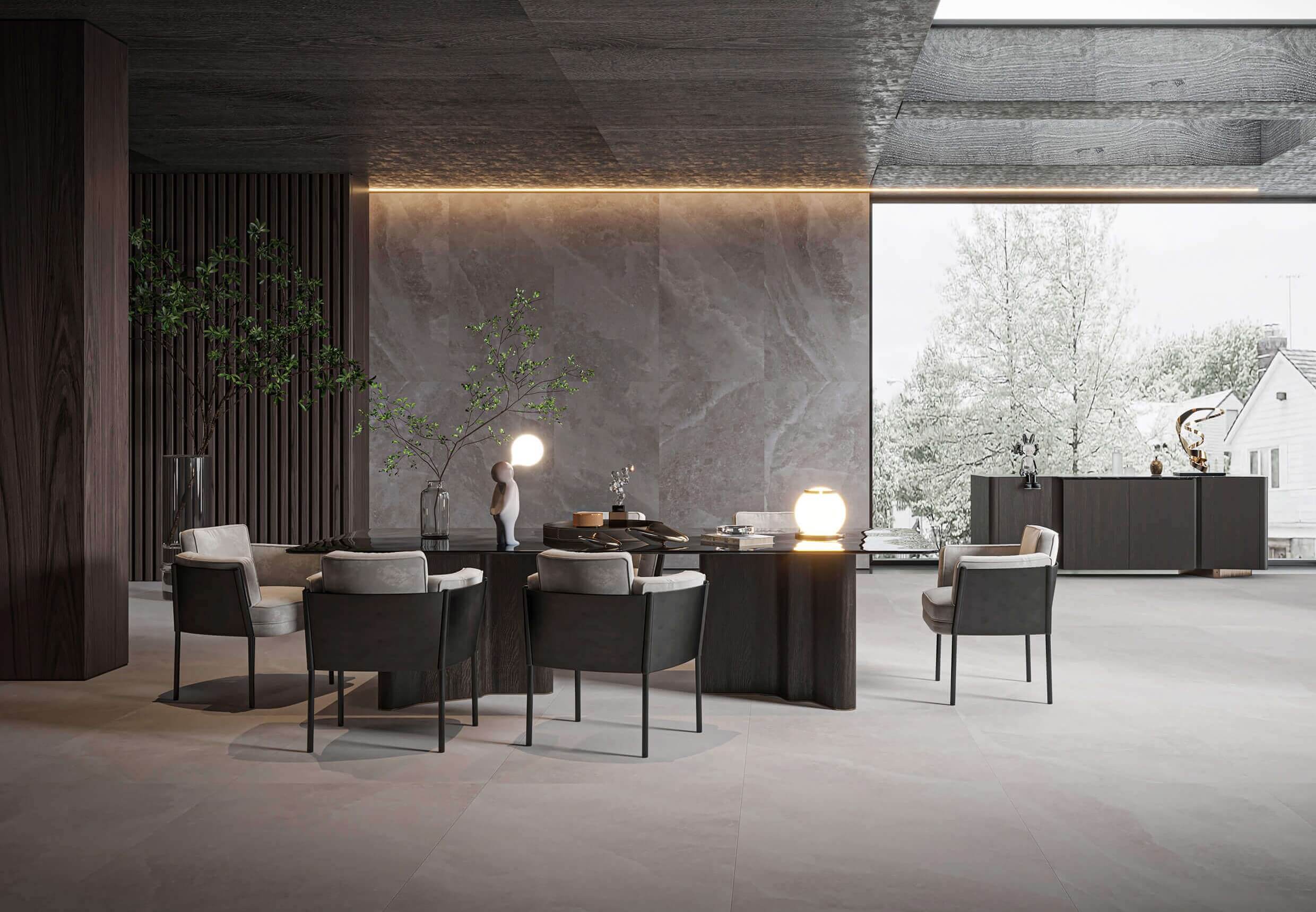 The Khalite Series is a remarkable addition to stone look tile manufacturer KITO's classic high-tech Stone range of porcelain tiles.This new collection is meticulously designed, extending attention to the smallest details to impart character and elegance to expansive designs, making it ideal for large-scale projects such as shops, shopping centers, restaurants, and public spaces.