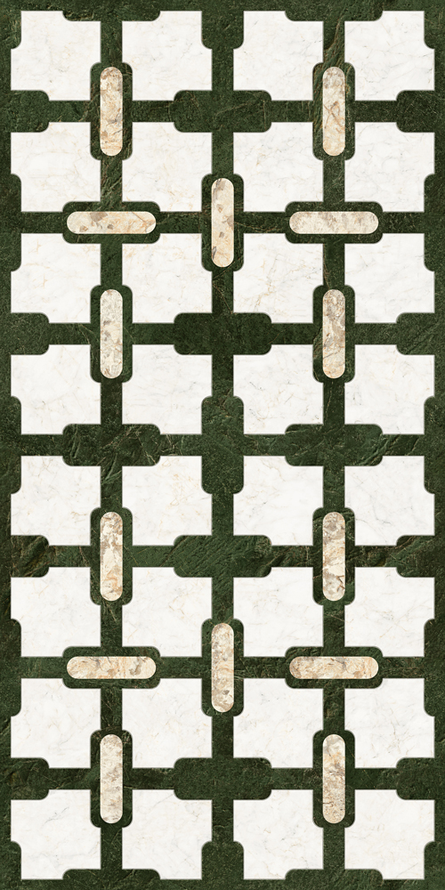 Drawing inspiration from the hui-style window lattices of traditional Jiangnan gardens, this Lattice porcelain floor tile collection combines the rhythmic interplay of dense and sparse patterns found in classic Chinese window lattices with the natural texture of stone, creating a vintage yet organic aesthetic.