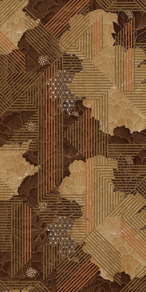 With a soft natural luster of 7-13°, the tiles emit a gentle and comfortable glow. The contrast between rich brown coffee tones and soft off-white hues creates a layered, dimensional effect. Triangular geometric patterns interplay with natural wood grain textures, evoking the rhythmic brushstrokes of an Impressionist painting.