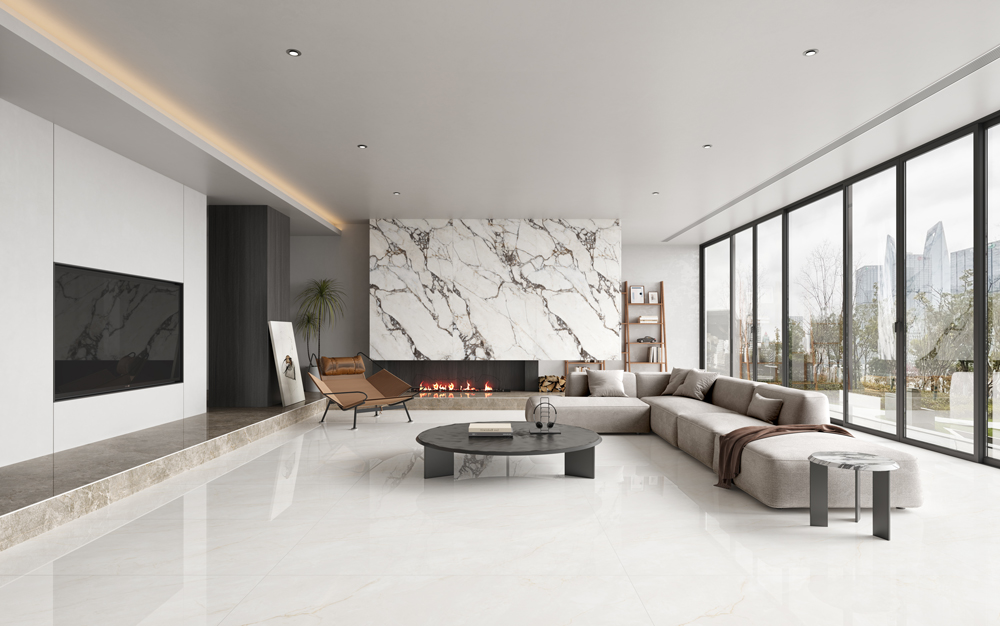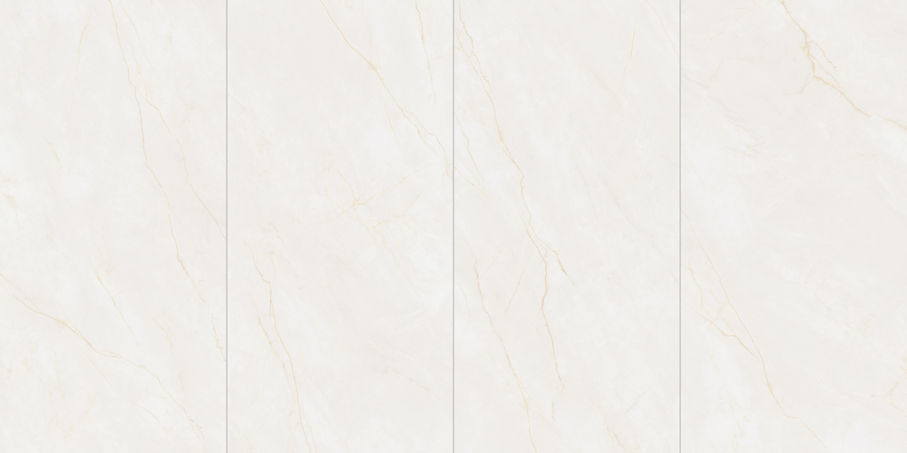 Marmo Bianco white gloss tiles feature a creamy white base color with a gradient from light to dark, offering a jade-like translucency that feels both bright and gentle. On this beige background, smooth and delicate gold lines meander freely, creating a rich and varied visual effect.