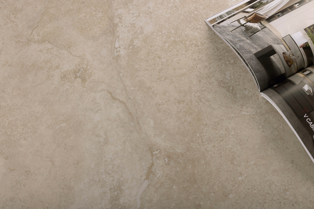 KITO's MILAN RHYTHM external wall tiles, resembling a cut from natural travertine, exude a weathered yet timeless stone touch texture, avoiding the appearance of aging while maintaining a subtle and balanced color variation.