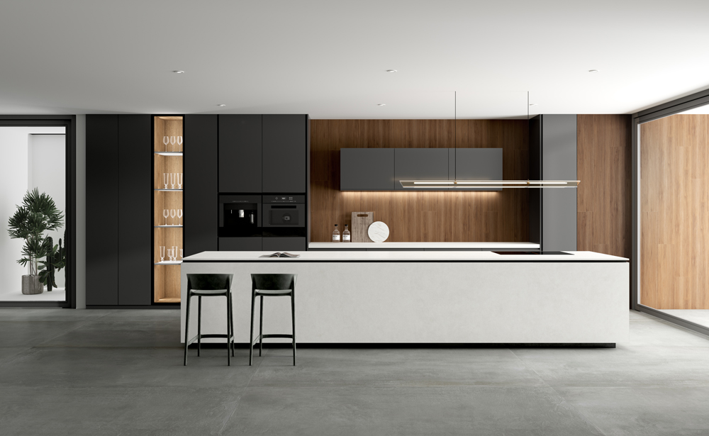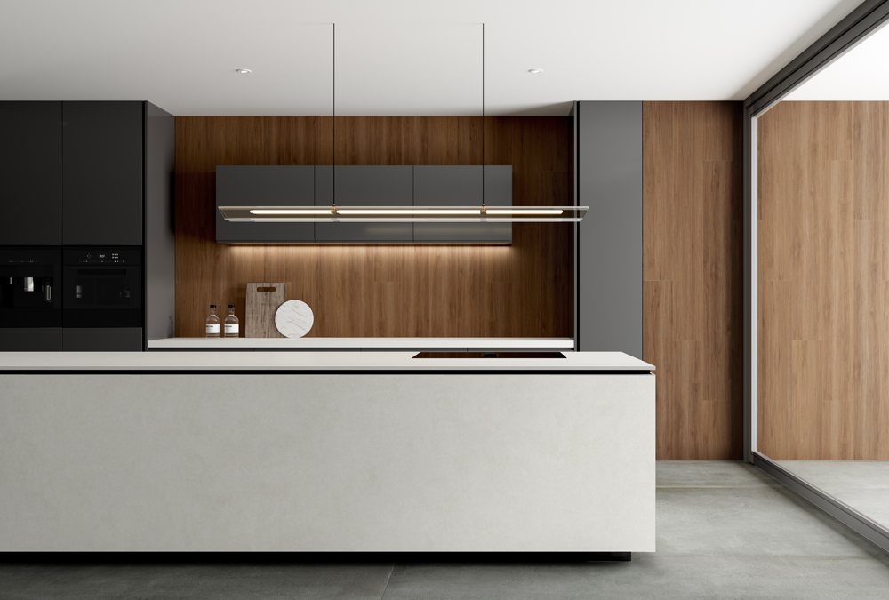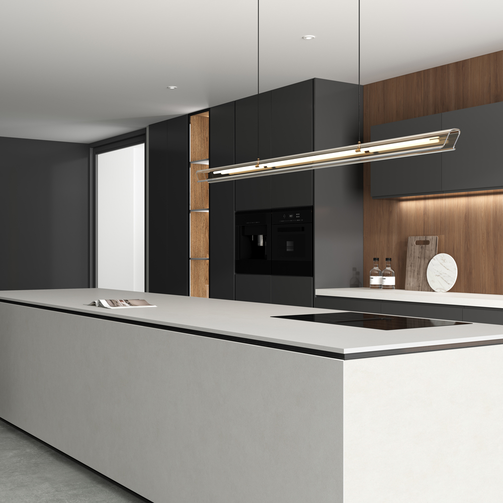 Through refined secondary creation, this large-format slab (3200x1600x12mm) presents a sophisticated concrete look, enhanced by a subtle stone touch surface. The finish reveals a uniform, harmonious texture inspired by microcement, blending minimalist aesthetics with tactile warmth.