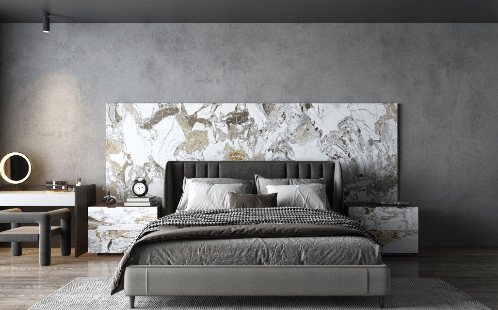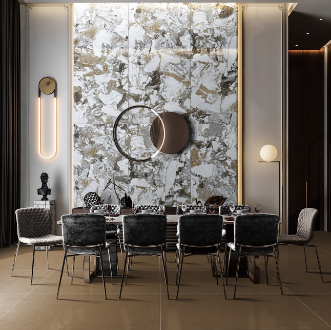 The tile size of 1800×900x9mm makes the space more open, while the crystal “sugar” effect surface adds simplicity and charm to the space.